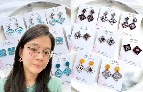 Zoe looks to her hometown of Georgetown, Penang to inspire many of her designs. Colourful Peranakan tiles and batik are some of the motifs you may find in the by.Sze collection of earrings, necklaces, hair pins, and more.
